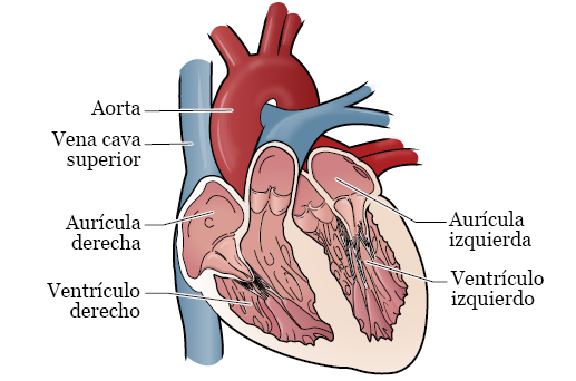 Hay muchos tipos diferentes de cardiomiopatía. Un tipo de cardiomiopatía que puede presentarse después de algunos tratamientos de quimioterapia es la cardiomiopatía dilatada. La cardiomiopatía dilatada ocurre cuando el ventrículo izquierdo (cavidad cardíaca) del corazón se agranda y no puede bombear sangre tan bien como debería (véase la figura 1). Esto puede provocar insuficiencia cardíaca o arritmia. La arritmia ocurre cuando el ritmo de los latidos del corazón no es regular. Puede ser demasiado rápido o demasiado lento.