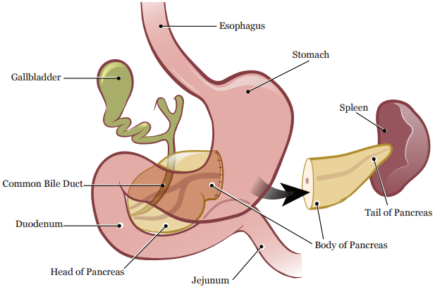 Una pancreatectomía distal es una cirugía en la cual se extirpa un tumor del cuerpo o de la cola del páncreas. El páncreas se encuentra en la parte posterior del abdomen (vientre), detrás del estómago y arriba del intestino delgado (véase la figura 1).