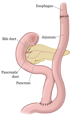 Una gastrectomía total consiste en extirpar todo el estómago, los ganglios linfáticos cercanos y partes del esófago y el intestino delgado. El esófago se reconecta con el intestino delgado para que pueda seguir comiendo y tragando (véanse las figuras 4 y 5).