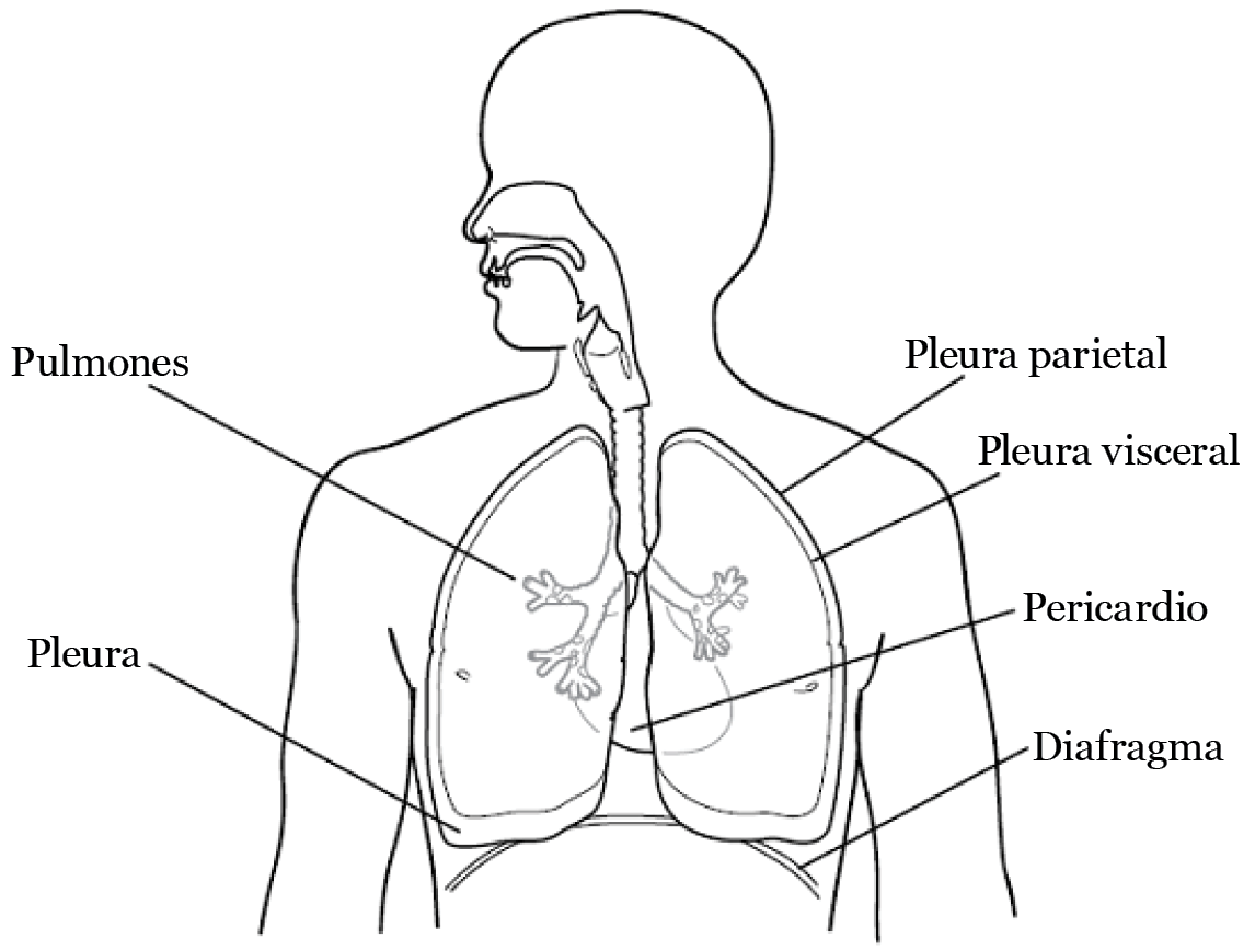 - El mesotelioma pleural afecta la pleura, que es el saco que rodea los pulmones (véase la figura 1). Este es el tipo más frecuente de mesotelioma.