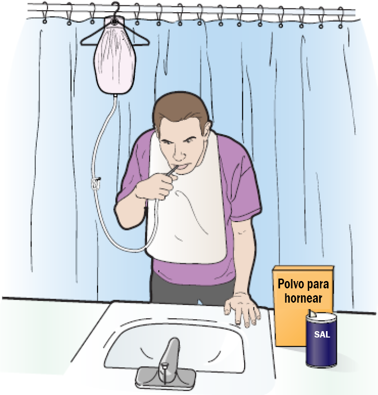 Las irrigaciones orales se hacen para mantener la limpieza y la humedad de la boca. Irríguese la boca cuando se despierte en la mañana, después de comer y a la hora de ir a la cama. Su enfermero le dará un set de irrigación oral con todos los materiales que necesita.