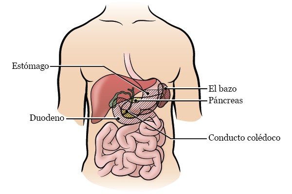 Durante la cirugía, el médico le extirpará el páncreas. Debido a la ubicación del páncreas en el cuerpo, también necesitarán extraer otros órganos (véase la figura 2). Estos son: