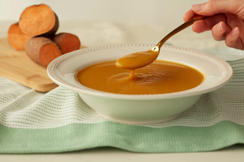 If you are following a bland diet and miss flavorful foods, give this comforting soup a try. For extra flavor, add a few drops of pumpkin-flavored oil. Use jarred or canned sweet potatoes if you don’t want to go to the trouble of steaming a sweet potato.