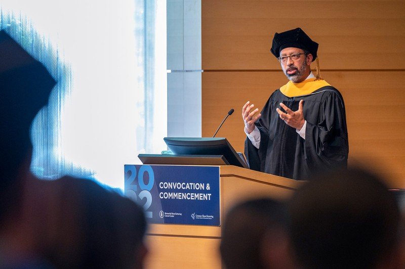 After two years of ceremonies conducted online due to the COVID-19 pandemic, Memorial Sloan Kettering Cancer Center (MSK) welcomed some attendees back to the Zuckerman Research Center auditorium for its 43rd Academic Convocation and Commencement. The event, which took place on May 18, 2022, was a celebration of talented scientists, including the Gerstner Sloan Kettering Graduate School of Biomedical Sciences (GSK) class of 2022.