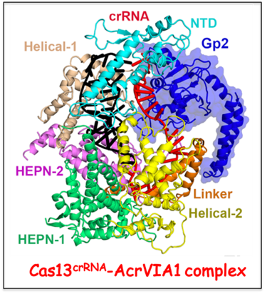 Cas13 recognizes complementary viral transcripts to trigger degradation of both host and viral RNA during the type VI CRISPR-Cas antiviral response. The Luciano Marrafini lab (Rockefeller University) has identified anti-CRISPR protein AcrVIA1 (Gp2) that inactivates the type VIA system from